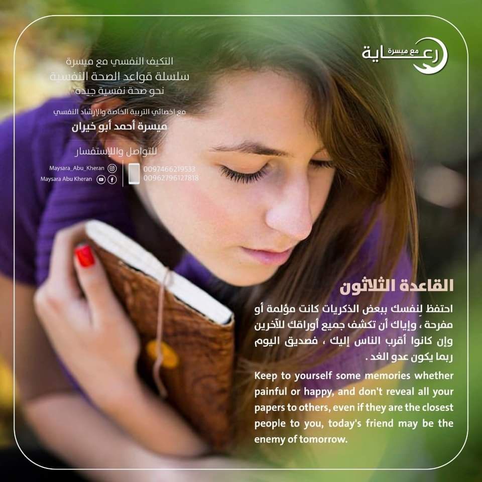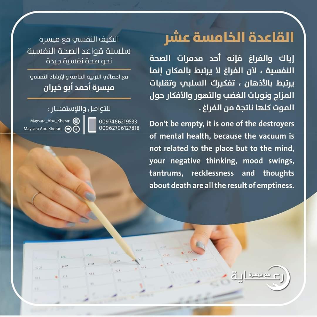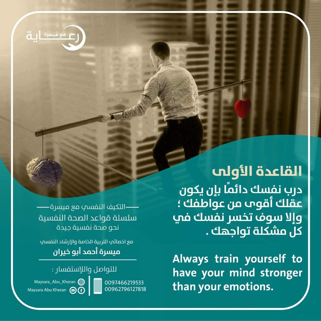 الصحة النفسية ليست غياب الألم، بل هي القدرة على معانقة الحياة بكل تناقضاتها، تقبل الحزن كما الفرح، وتحويل المحن إلى دروس. هي أن تمنح نفسك الإذن بأن تكون ضعيفاً أحياناً، وأن تعترف بحاجتك إلى الراحة عندما يثقل التعب قلبك.